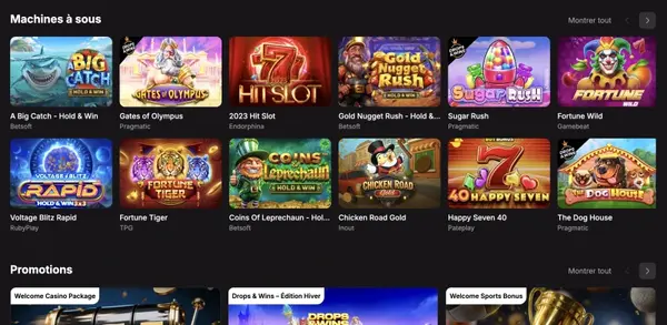Nous proposons 14 500 jeux dans les principales catégories casino, avec des fournisseurs de premier plan tels que Pragmatic Play, NetEnt, Play’n GO, Evolution Gaming, Nolimit City, Betsoft, BGaming, Playtech, Novomatic et Amatic Industries. Ce mix vous permet de passer des spins rapides aux règles classiques des jeux de table et aux sessions live dealer sans quitter votre solde.