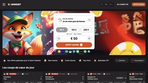 Pour les joueurs sportsbook, notre bonus de bienvenue sport est de 100% jusqu’à €100, et nous ajoutons un pari gratuit de €25 sur votre première mise sportive. La valeur continue provient aussi de nos paliers de club de fidélité et de notre programme VIP, où les récompenses évoluent avec l’activité et le volume de mise plutôt qu’avec des demandes ponctuelles. Si vous avez déjà utilisé un bonus Casinoist, vous pouvez toujours être éligible aux rechargements et aux courses selon les règles de la promo.